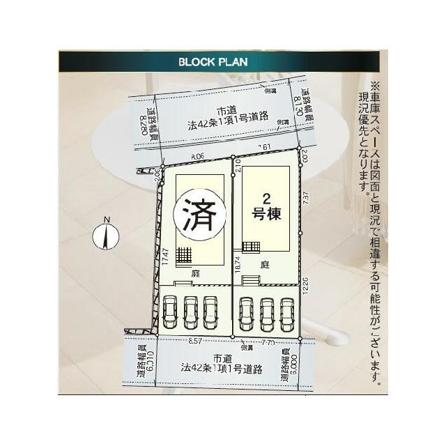 号棟番号:2号棟 住環境形成地区による建蔽率 法第22条区域 壁面後退1m 最高高さ制限10m 敷地内北側・東側擁壁有り 建物面積に別途ルーフバルコニー約7.29平米有り |