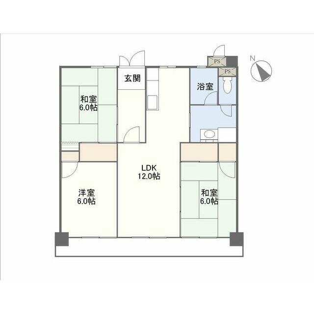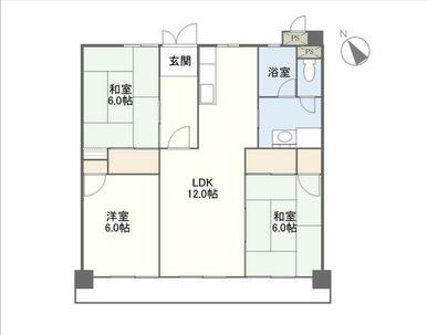 | 間取り(内訳) | 3LDK(和室6.0帖 和室6.0帖 洋室6.0帖 LDK12.0帖) | ||